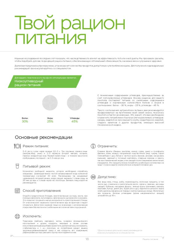| Рацион питания Метаболизм алкоголя Метаболизм кофеина Физическая нагрузка Непереносимости Вкусовые ощущения Никотин Психологические зависимости Пищевое поведение Потребность в витаминах Уровень холестерина Спортивный потенциал | Рацион питания Метаболизм алкоголя Метаболизм кофеина Физическая нагрузка Непереносимости Вкусовые ощущения Никотин Психологические зависимости Пищевое поведение Потребность в витаминах Уровень холестерина Спортивный потенциал | Рацион питания Метаболизм алкоголя Метаболизм кофеина Физическая нагрузка Непереносимости Вкусовые ощущения Никотин Психологические зависимости Пищевое поведение Потребность в витаминах Уровень холестерина Спортивный потенциал |