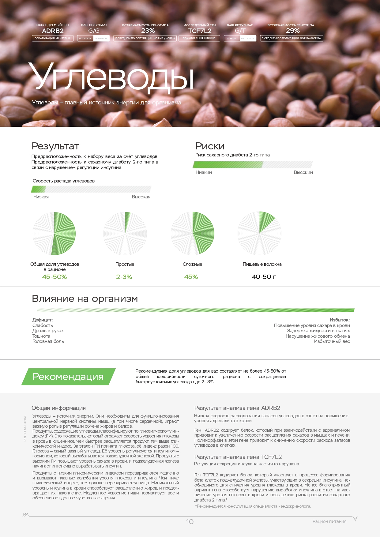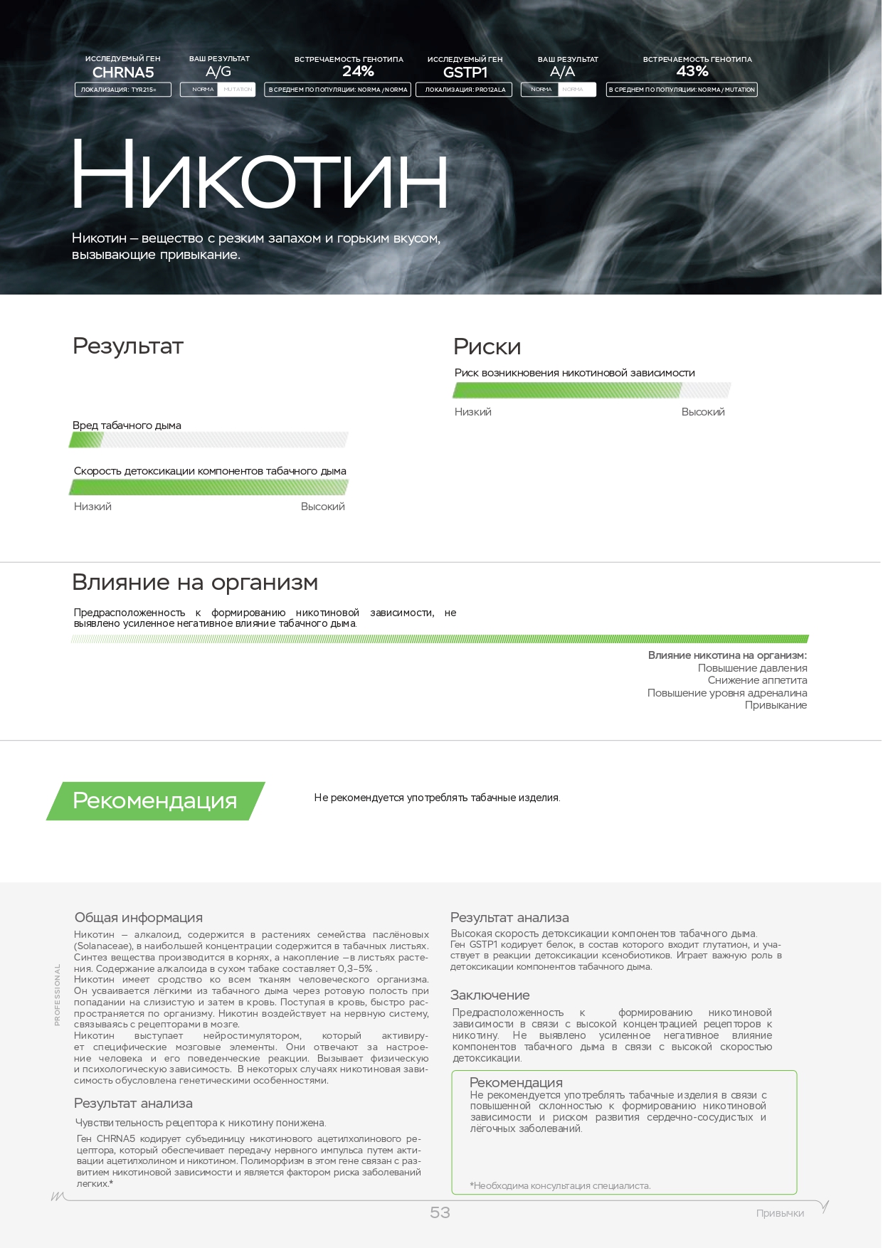 Этот ДНК анализ показывает влияние наиболее важных 10 генов на психическое и эмоциональное состояние. Именно они регулируют выработку гормонов, работу нейромедиаторов. Используйте знания о природных свойствах своего организма для борьбы со стрессом, повышения работоспособности и общего тонуса. Каждый человек индивидуален, поэтому мы рекомендуем пройти наш генетический нейро тест в Дмитровске.